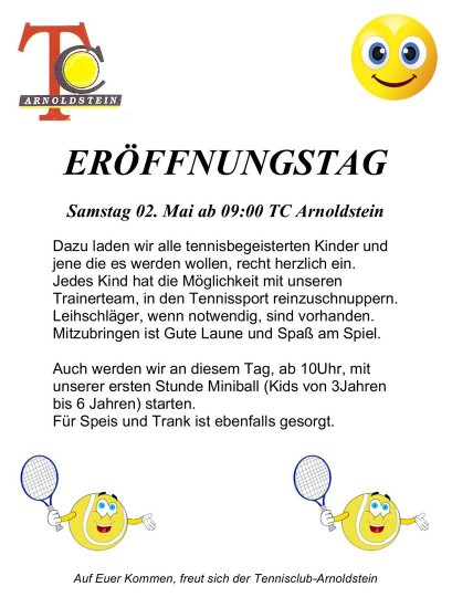 Und: Tennis ist ein Spiel für jedes Alter. Ein Kind lernt, Bewegungsabläufe zu erfassen und sein Verhalten darauf einzustellen. Jugendliche schulen ihre Technik ebenso wie ihre Persönlichkeitsbildung. Denn beim Tennis steht Fairness ganz oben. Aber auch Erwachsene lernen nie aus. Wie im Leben heißt es: unaufhörliche Weiterbildung. Und ältere Menschen, ja bis hinauf ins höchste Alter, halten sich körperlich und geistig beweglich mit dieser Sportart, die relativ gefahrlos und heute auch gar nicht teuer ist und eine Menge Freude ins Leben bringt.